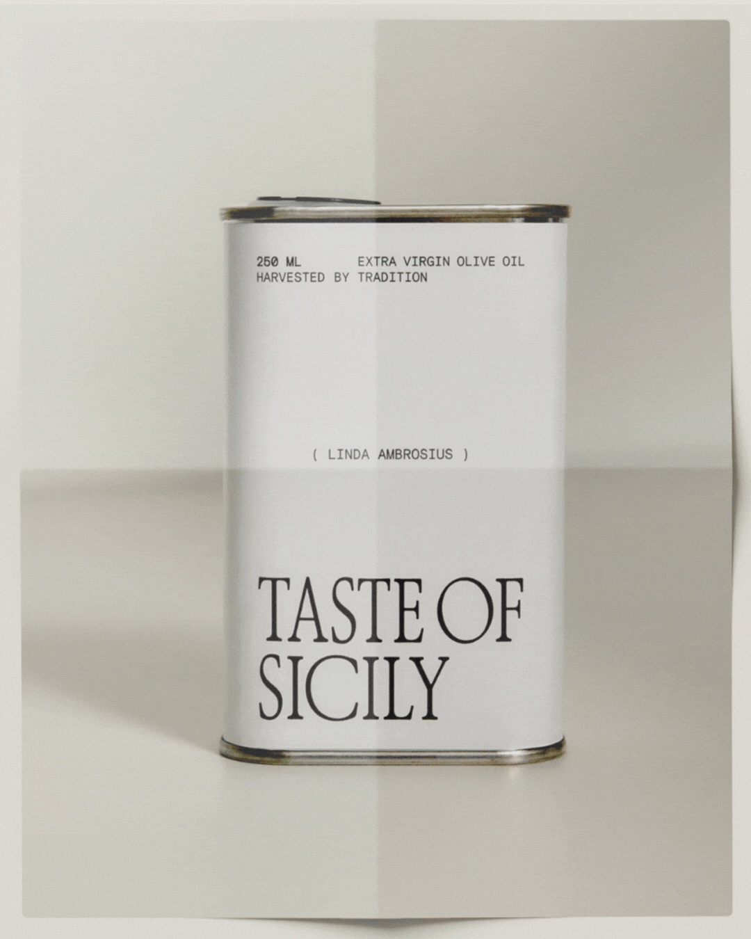 We had the joy of designing the packaging for this special project, inspired by the purity and tradition behind each bottle. The oil is sourced from a historic family-run mill in Chiaramonte Gulfi, Sicily, where olives are still hand-picked using the age-old brucatura method, a true homage to the land and its rhythms.